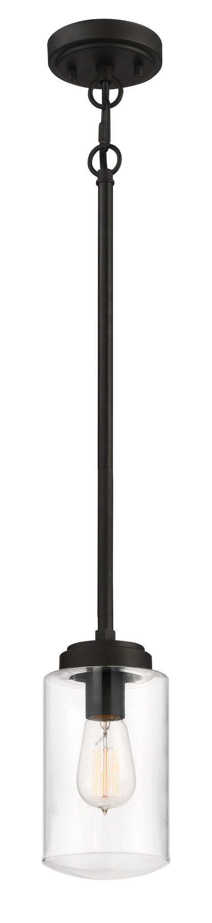The Crosspoint 1 Light Outdoor Mini Pendant in Espresso by Craftmade combines robust design with elegance, perfect for both indoor and outdoor spaces. This wet-rated pendant features a sleek angular frame and a clear glass canister, ensuring both strength and style. It is equipped with 3 x 12-inch and 1 x 6-inch downrods for adjustable height and requires a single medium base 60-watt bulb (not included). The pendant measures 10.13 inches in height, 5 inches in width, and 5 inches in depth, with a leadwire length of 78 inches. With a versatile design, it is ideal for various applications, enhancing any environment.
