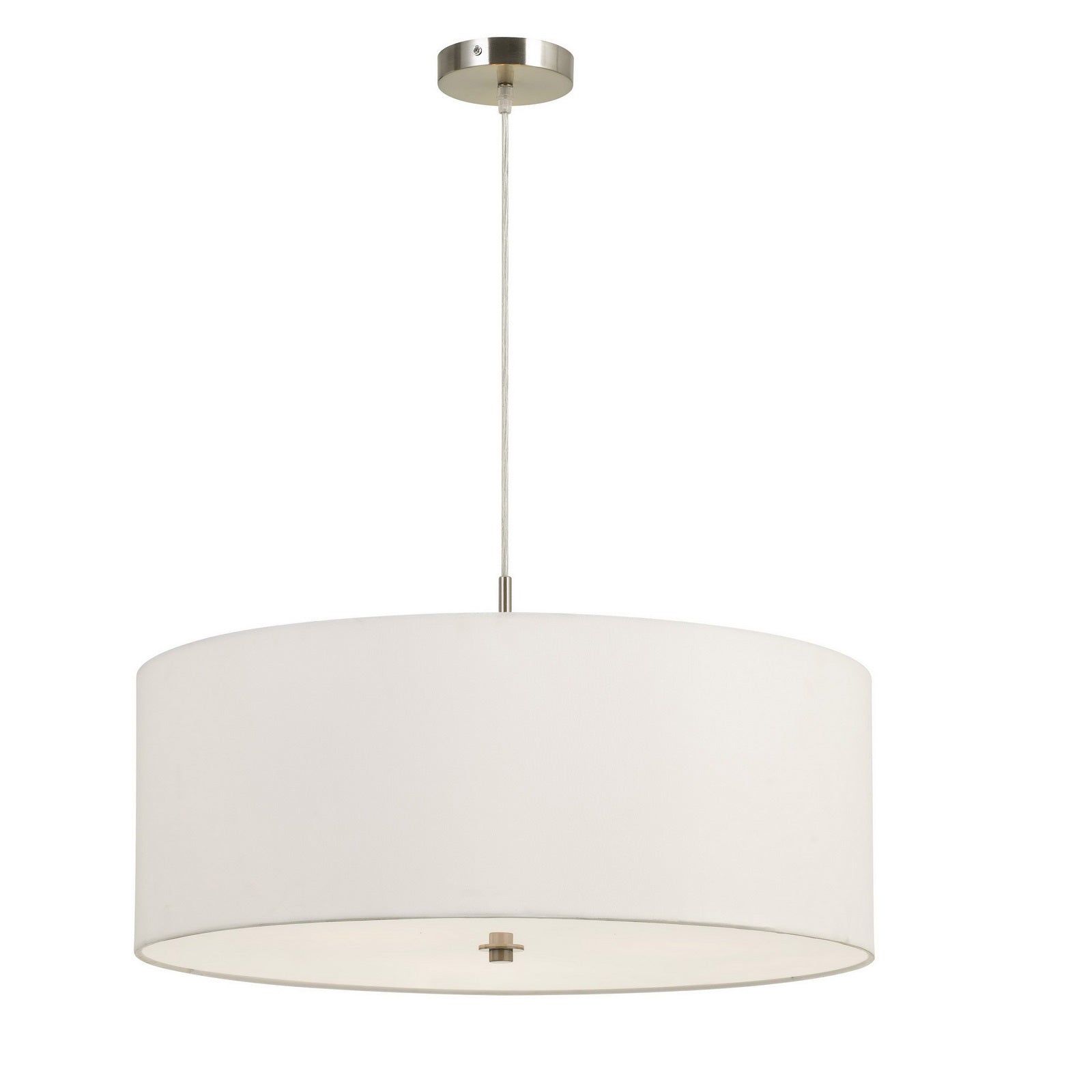 The FX-3629-3P Addison Drum Pendant Fixture is a stunning lighting piece that blends durability with elegance. Featuring a 24-inch diameter and a height of 12.25 inches, this fixture is constructed from durable metal and fabric, ensuring longevity. It requires three E26 base bulbs with a maximum wattage of 60W each (not included) and includes a diffuser to soften the light. The pendant comes with 6 feet of cord, making it versatile for various ceiling heights. Delivered in one carton, it is easy to install without the need for assembly. With a brushed steel base color, this fixture complements a range of decor styles and is backed by a one-year warranty, promising quality and craftsmanship.