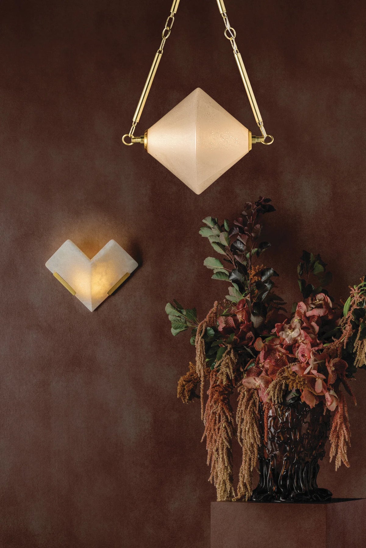 Solara captures the quiet poetry of a solar system in motion; celestial, geometric, and gently luminous. Inspired by constellations, each cloud seedy glass shade glows like a radiant star, suspended in orbit by slender rods finished in Vintage Patina Brass. The 3- and 5-light chandeliers feature diamond-shaped shades that create dimensionality from every perspective, while the single-light pendant drops like a sculptural earring. The result is lighting that feels both architectural and romantic. They are designed not just to illuminate, but to bring a sense of wonder to the everyday.
