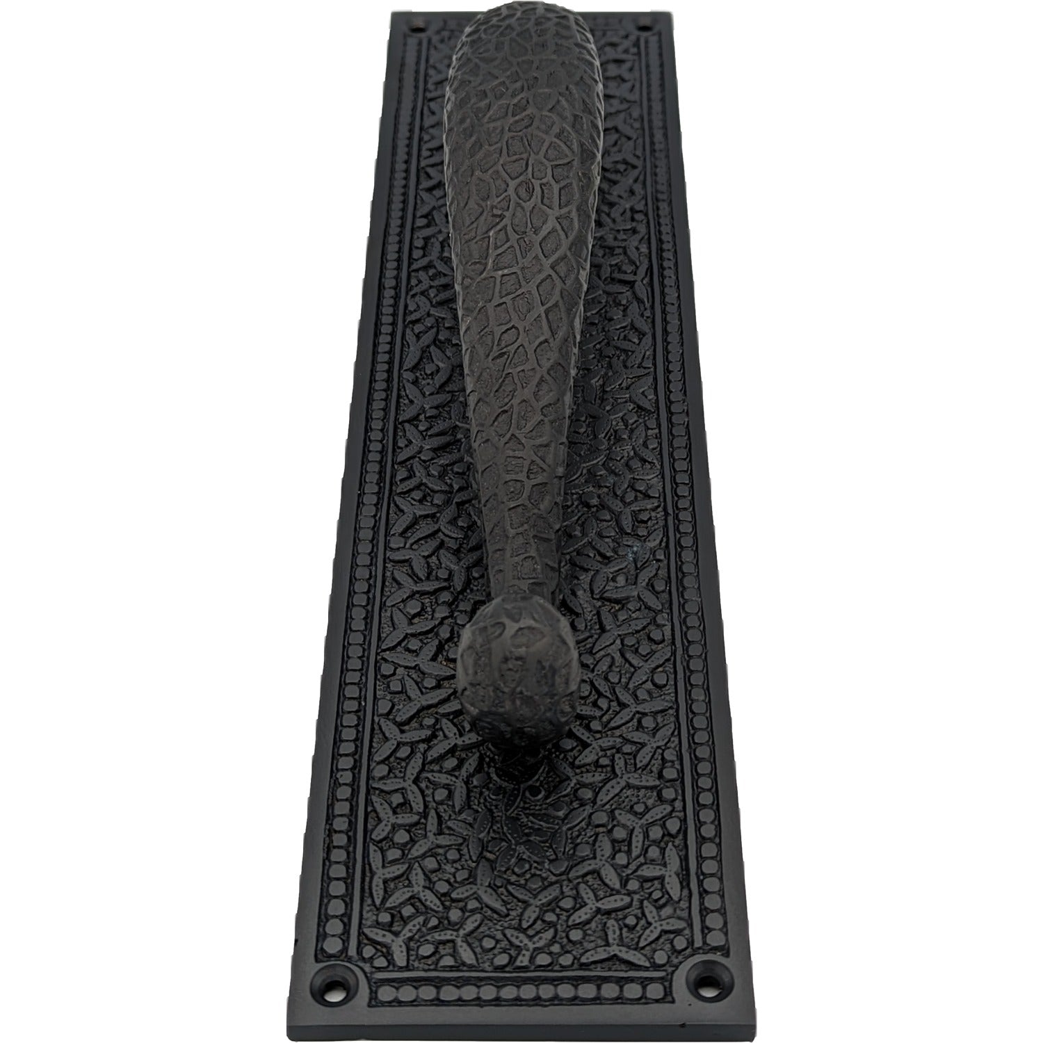 The Rice Pattern is a distinctive and ornate pattern that gained popularity during the 19th century. This intricate pattern features a design reminiscent of grains of rice originally made by Yale and Town of Stamford, Connecticut. The solid brass construction not only ensures durability but also adds a touch of timeless sophistication to your pocket door sets. With its stylized leaves and intentional breaks, this hardware seamlessly blends historical charm with contemporary functionality.