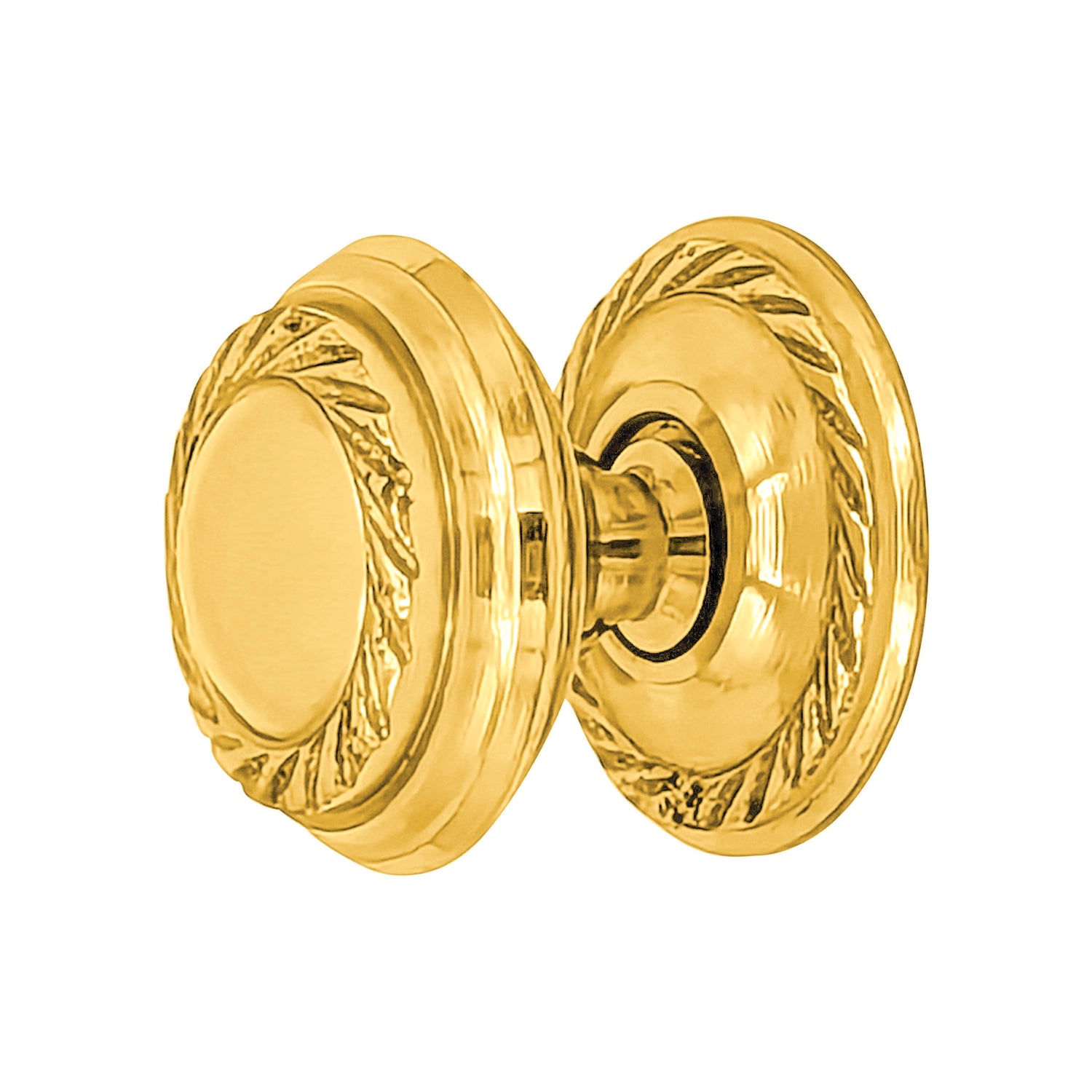 1 Inch Solid Brass Georgian Roped Round Knob - Measures 1 inch in diameter with a projection of 1 inch. Comes complete with mounting hardware.