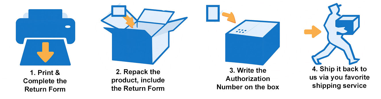 All returns and exchanges must include completed paperwork. Missing or incomplete paperwork may delay processing and may result in additional restocking fees.