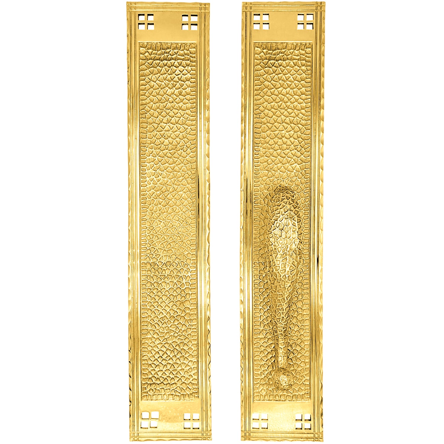 The term "craftsman" is often linked to Gustav Stickley, who promoted handcrafted, functional design through his magazine, "The Craftsman." This style gained popularity, inspiring movements like the Arts & Crafts and Mission Revival, spreading across the United States and remaining popular for its enduring simplicity and practicality. The solid brass construction not only ensures durability but also adds a touch of timeless sophistication to your pocket door sets. With its stylized leaves and intentional breaks, this hardware seamlessly blends historical charm with contemporary functionality.