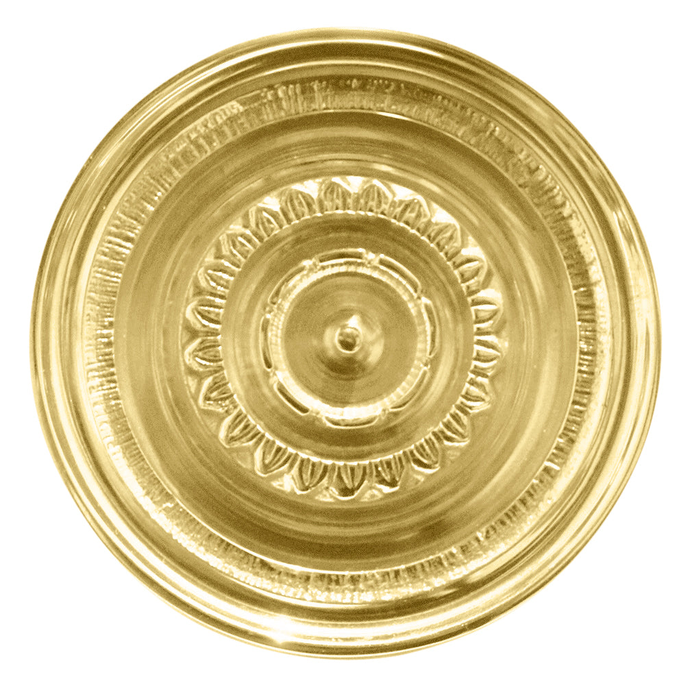 This knob was designed for a French style door and is much larger than your typical door knob. It measures 3 1/2 inches in diameter and projects 1 5/8 inches. Back plate is 2 1/8 inches diameter. It is available in several finishes including polished brass, antique brass and Black Bronze and comes complete with mounting hardware. The average lead time for this knob is approximately 1 to 2 business days.