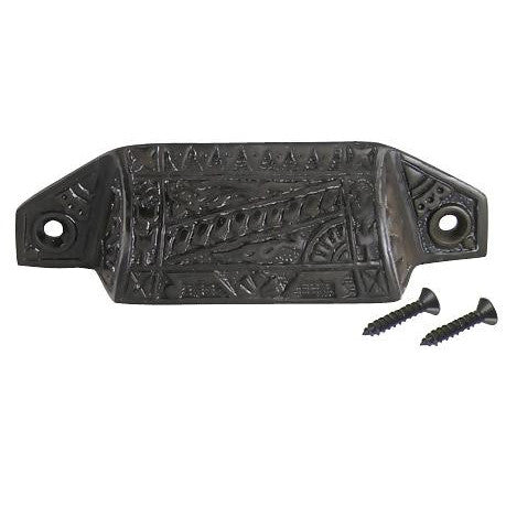 Measures 4 1/8 inches long and 1 1/8 inches tall. Center to center spacing measures 3 1/2 inches (88.9 mm 3.50 c-c). Hand cast and hand finished piece with highly ornate detailing. This product comes as an unlacquered natural brass and it will patina over time. A high strength lacquer coating is available upon request. Available in a variety of finishes including Polished Brass, Antique Brass, and Black Bronze.