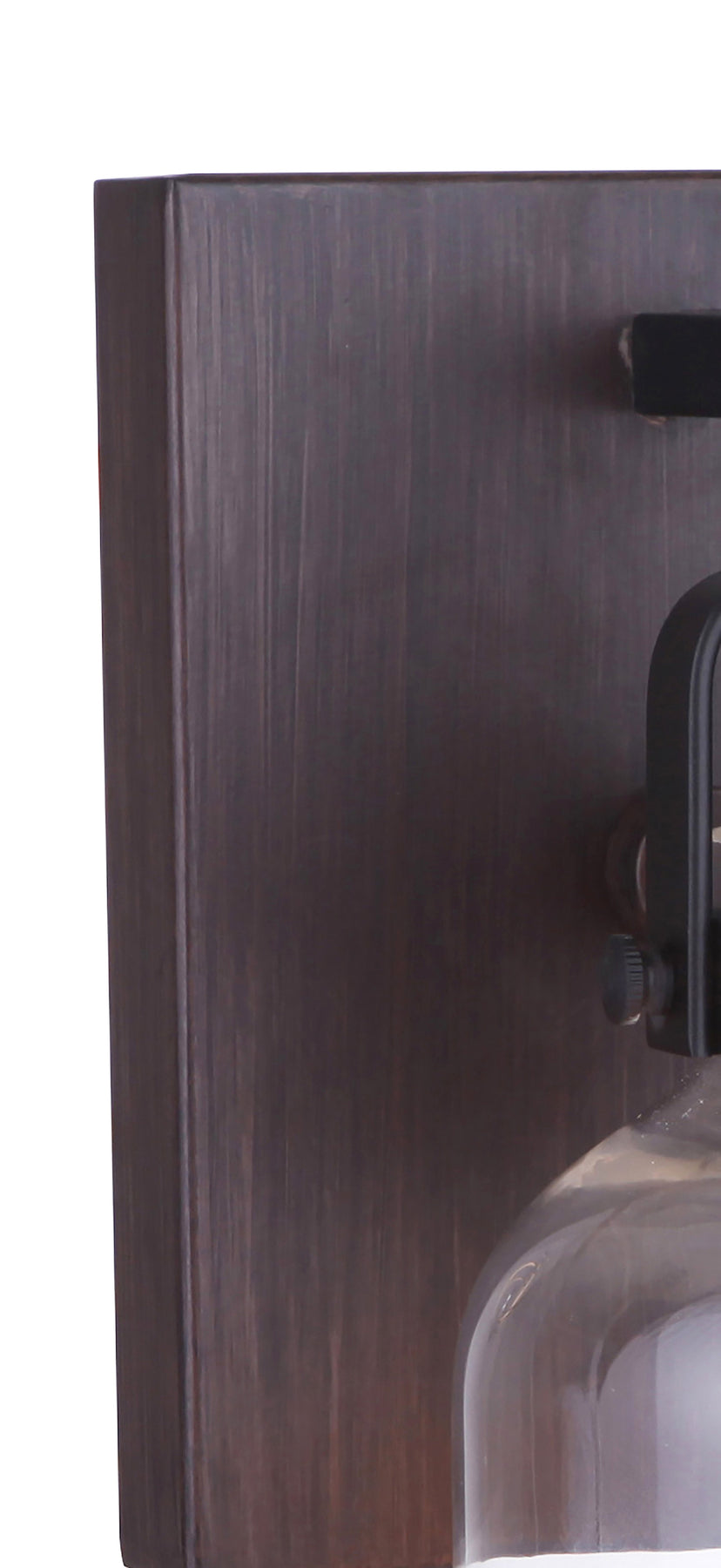 Clean lines, clear glass with a subtle nod to industrial make the Foxwood an ideal choice equally at home in a transitional or traditional setting. The flat black/dark teak finished vanities feature dark teak backplates while the hanging fixtures feature dark teak faux wood frames.