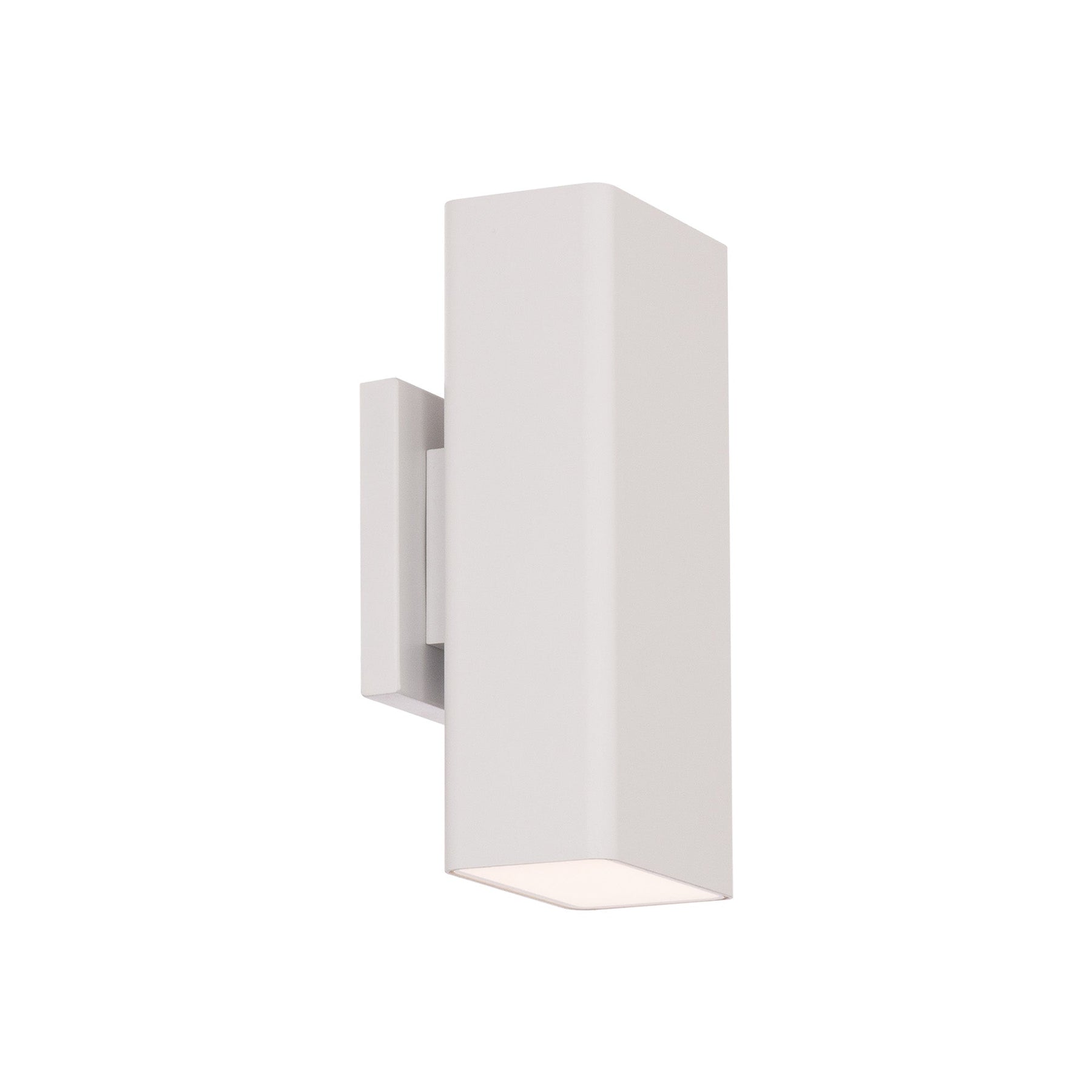 Edgey 10in LED Outdoor Wall Light 3000-3500-4000K in White. Precision, framed. A sleek design with sophisticated up and downward illumination. Constructed with a durable aluminum and featuring a clear seeded glass diffuser. Top and bottom illumination. Wall mounted vertically, up or down. NEW Tri-CCT technology features a switch inside the canopy that is accessible during installation and allows you to toggle color temperatures between 2700K Warm - 3000K Warm White - 3500 White to find and set the perfect color temperature for your space. This fixture is factory pre-set to a default 3000K setting for consistency and can be modified in the field during installation. AC LED technology - no driver or transformer required. Easily fits on a pancake junction box. Smooth and continuous dimming with electronic low voltage ELV or TRIAC dimmer options. High Powered Replaceable LED Module CRI: 90, Rated Hours: 60,000, Color Temp Adjustability: 3000K-3500K-4000K Standards: ETL/cETL and UL 1598, IP65 listed for Wet Locations. CEC Title 24 Compliant.